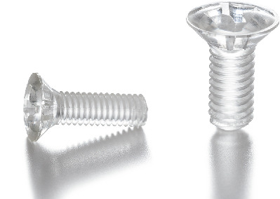 - PC (polycarbonate) Phillips cross recessed round flat head machine screws.