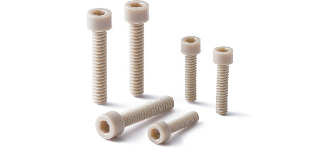 - Hex head screws made of PEEK containing 30% glass fiber. The tensile strength is approximately 1.7 times that of ordinary PEEK.