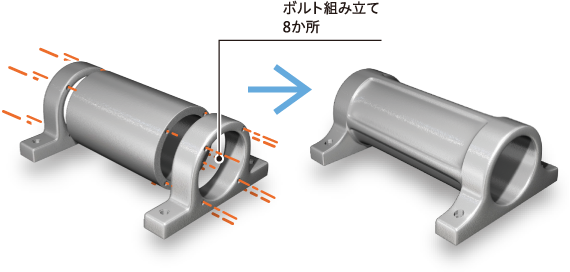 寸法精度が向上します。 - 一体化により、安定した強度が得られます。