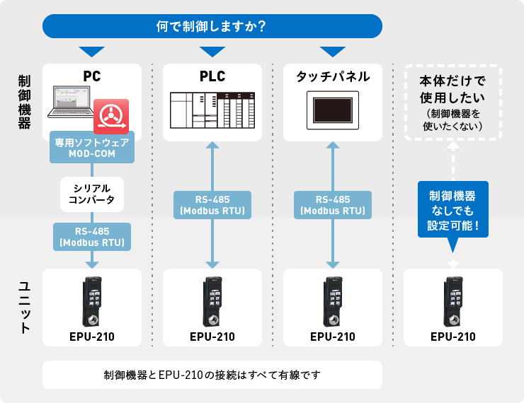 送受信機EPC-210-EIPは、PLCとEtherNet/IP™接続可能です。
