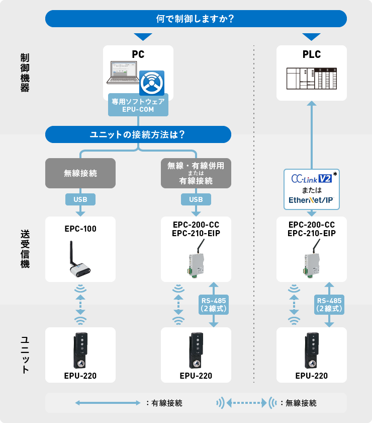 送受信機EPC-200-CCは、PLCとCC-Link接続可能です。