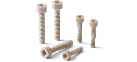 - ガラス繊維含有率30%のPEEK製の六角穴付きボルト。通常のPEEKに比べ引張強さが約1.7倍。