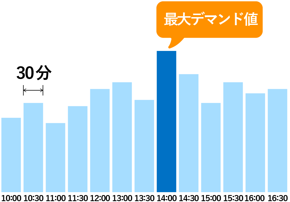 1日のデマンド値の中で、最大値がその日の「最大デマンド値」になります。
