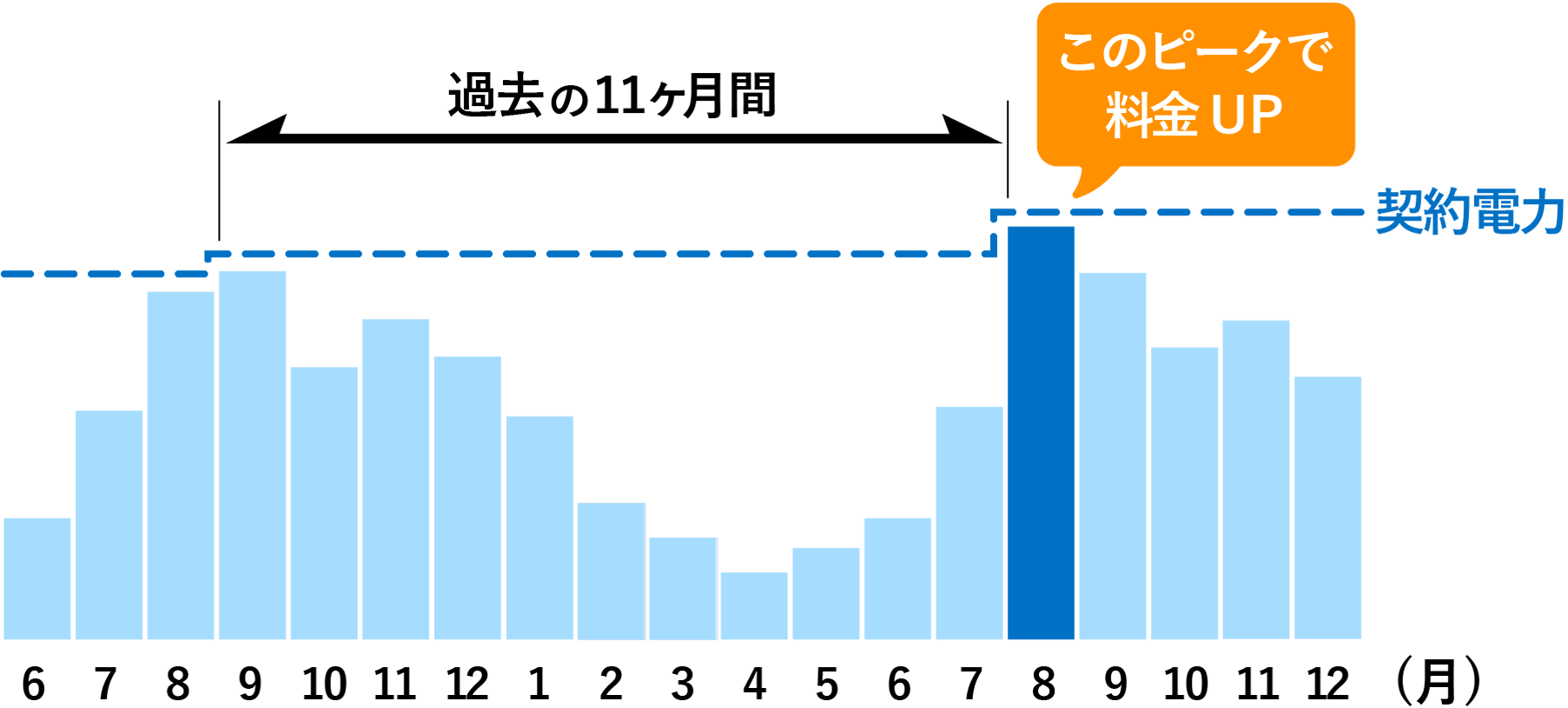 いかなる事由にかかわらず、本商品の使用中に契約電力を超過し、電力の基本料金が上がった場合、