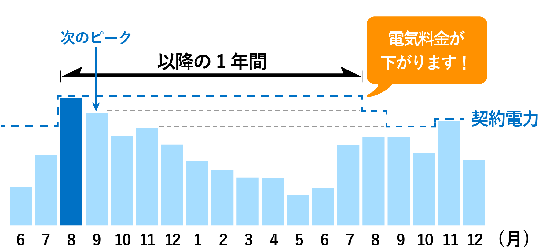 電気料金を削減するためには、以降1年間の「最大デマンド値」を抑えることにより可能になります。